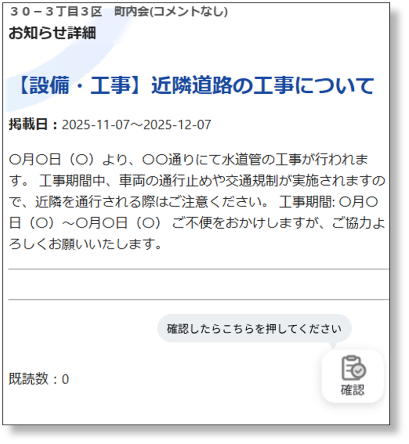 確認したら【確認】アイコンをクリックして既読登録してください。