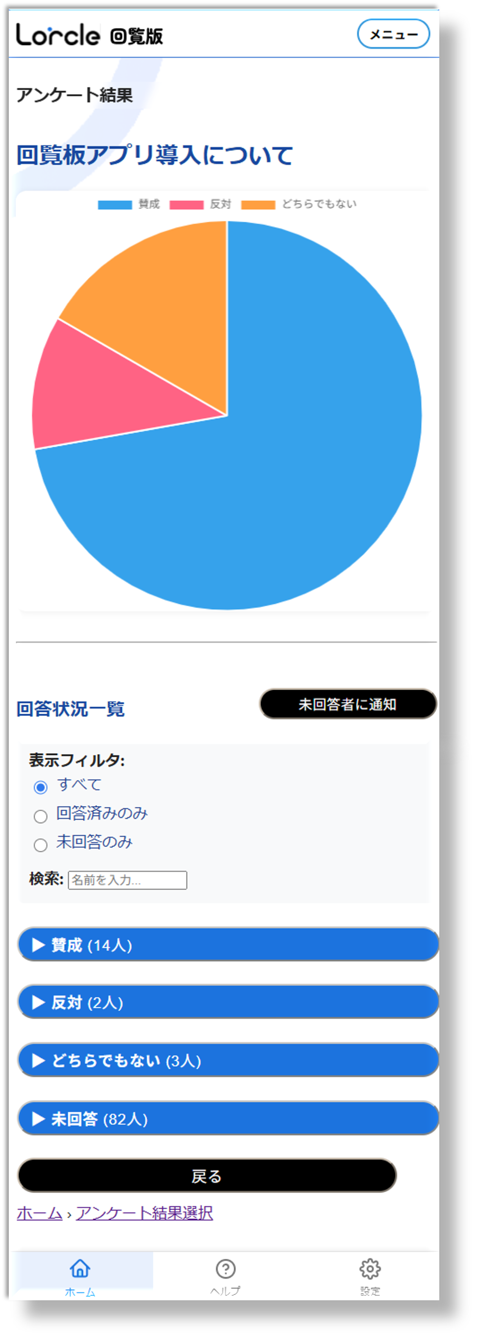 出欠確認などができるアンケート機能もあります。